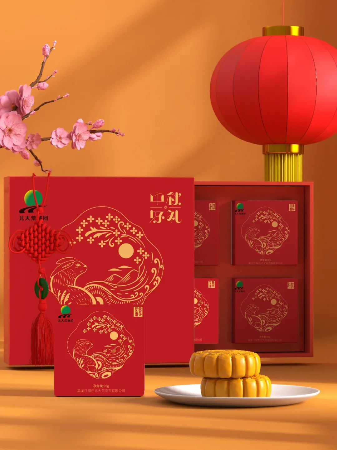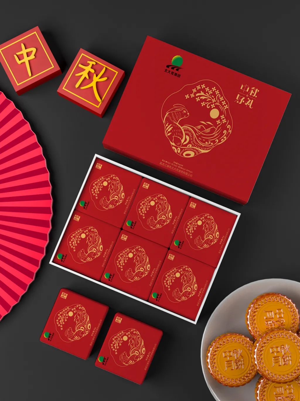 【唐门方案】:望月礼盒采取中国节日传统颜色-红色作为主色调。手绘玉兔又突显年轻化,整体画面烫金工艺,简洁又不失高档。